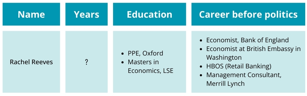 Now let's look at work experience. Rachel Reeves has worked as an economist in some key international financial institutions. That has to be good news, doesn't it?