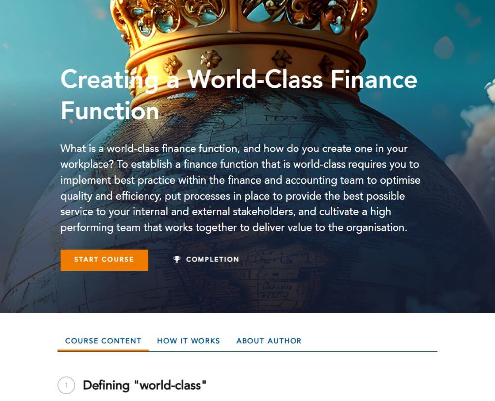 What is a world-class finance function, and why should you want to create one in your workplace? This course will help you to implement best practice in finance and accounting to optimise quality and efficiency, and to provide the best possible service to your stakeholders.