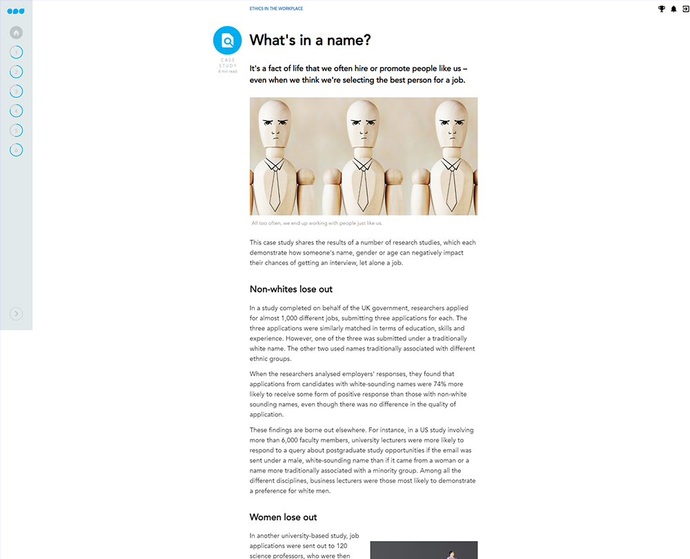 In a world full of grey areas and thorny dilemmas, acting ethically is far from straightforward. This course explores the concept of ethics and issues faced in the workplace. Discover how to adjust your own behaviour and promote ethical practices.