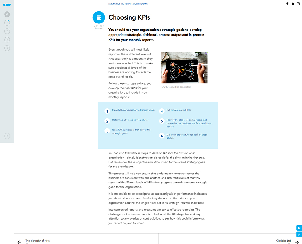 World class finance functions produce monthly reports that managers actually read. This course enables you to delight your audience by setting clear objectives, creating compelling visuals and creating monthly reports that drive business improvement.